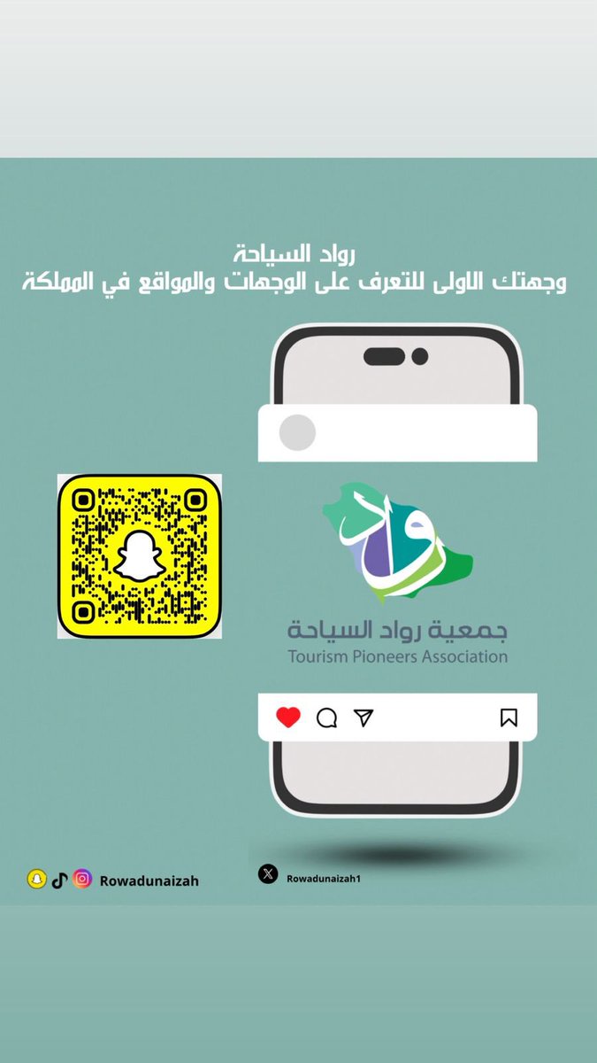يسعدنا متابعتكم لنا على السناب شات ، للاطلاع على أبرز الأنشطة ، الفعاليات ، والجولات السياحية التي تنظمها الجمعية ، كونوا بالقرب من تفاصيل الجمال والتراث والسياحة المستدامة 🌱.